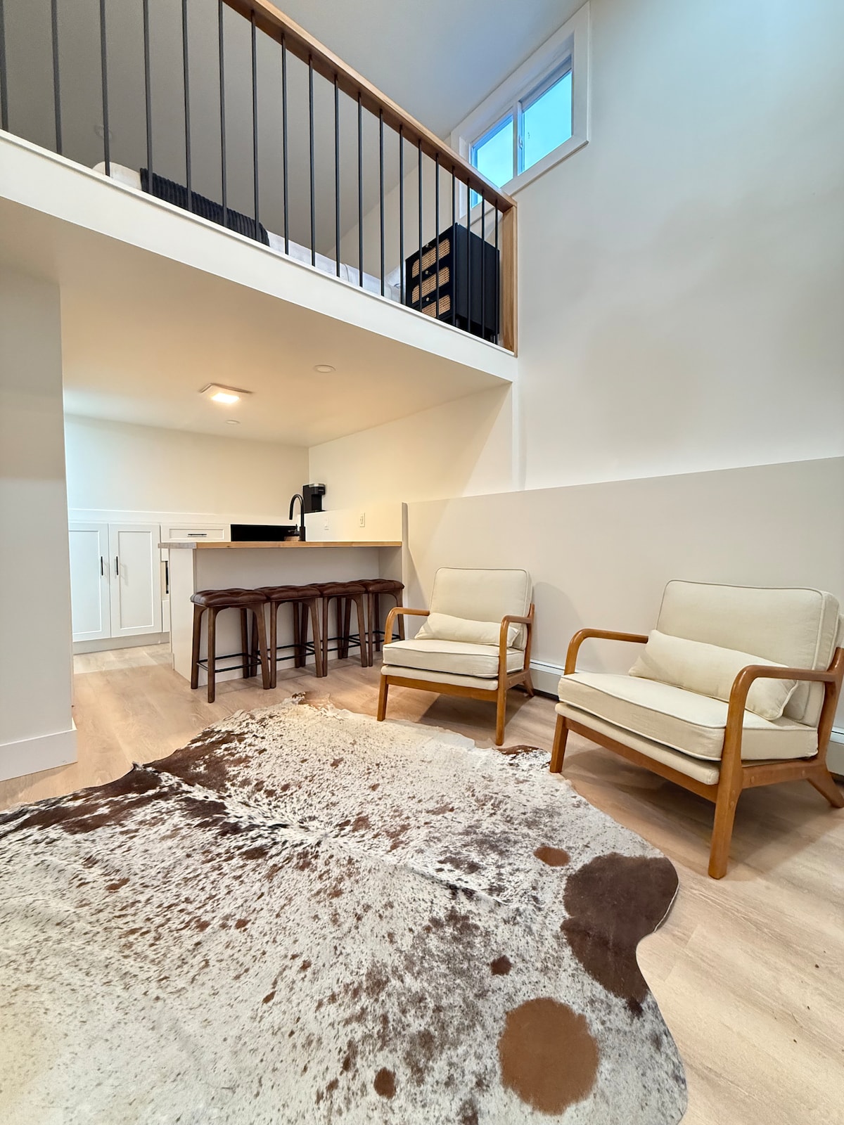 Step into our beautifully transformed garage apartment. A modern and cozy space perfect for solo travelers, couples, or business guests. Loft features a stylish interior, a comfortable sleeping loft, a full kitchen, and a sleek bathroom, making it a relaxing home away from home. Nestled in a peaceful neighborhood with easy access to local shops, dining, and major highways, it offers the ideal blend of comfort and convenience.