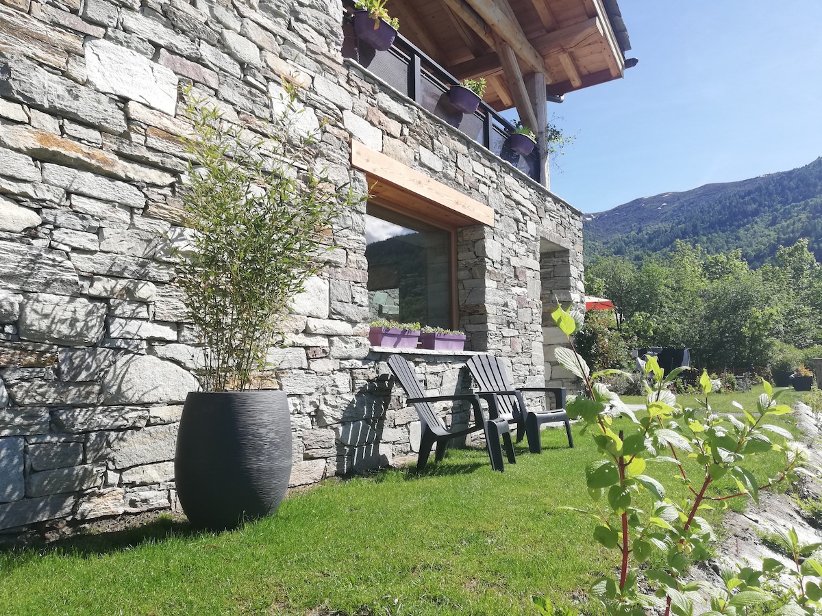 I en liten typisk fjellandsby (nær skianlegg og ved foten av Vanoise nasjonalpark), en hytte med karakter i tre, og lokal stein, renovert og svært romslig (250 m² med 1000 kvm hage). Plass til opptil 15 personer. Huset vender sørover med ugjennomtrengelig utsikt over dalen og de fjellrike massivene. Nyt badstuen etter en dag med ski eller fotturer, og ikke glem biljard og bordfotball. Perfekt for familier og vennegrupper!