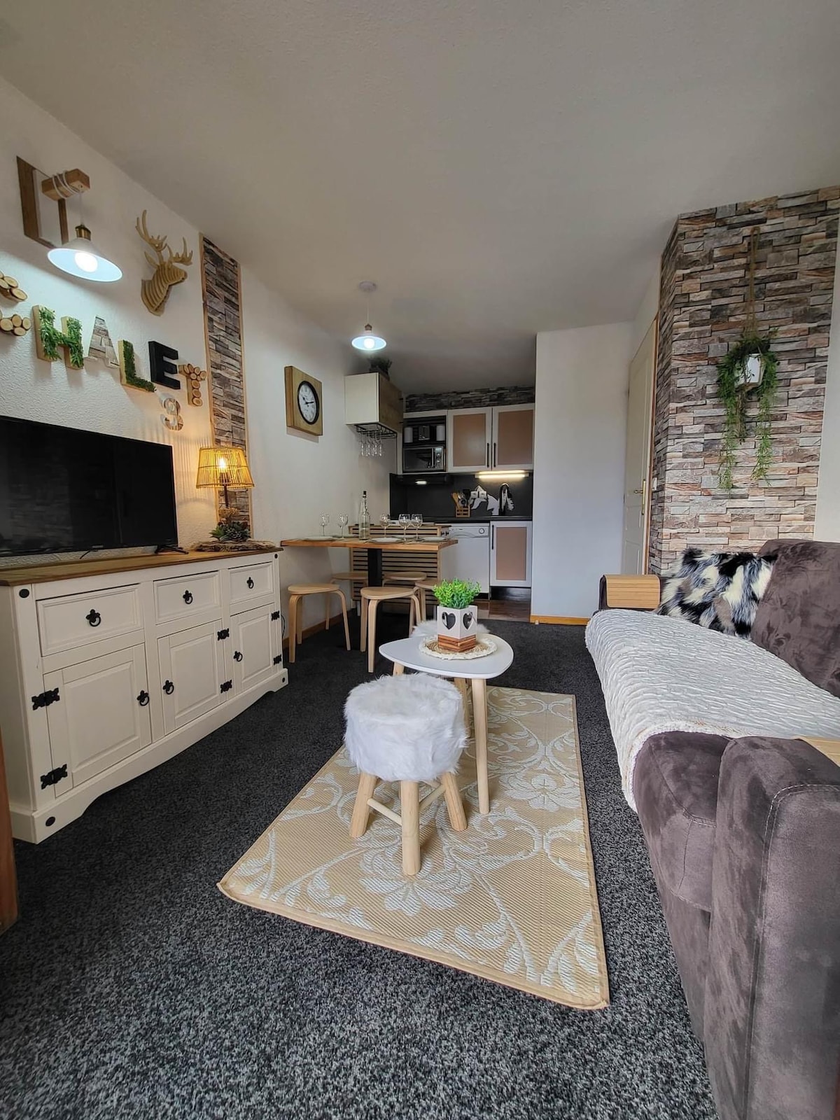 Lakenalternativet spør oss. 🎅 Leilighet Le1900 🌲 5 personer, ski ved foten, fantastisk utsikt over fjellet.⛰ Bosted mindre enn 20 meter fra bakkene🎿, kom og nyt dette unike og koselige stedet, med stor balkong med utsikt over feriestedet. Alle fasiliteter ligger ved foten av boligen (supermarked, restaurant, utleie av utstyr, heiskontor, turistkontor osv.). Et sikkert skiskap er tilgjengelig for bruk.