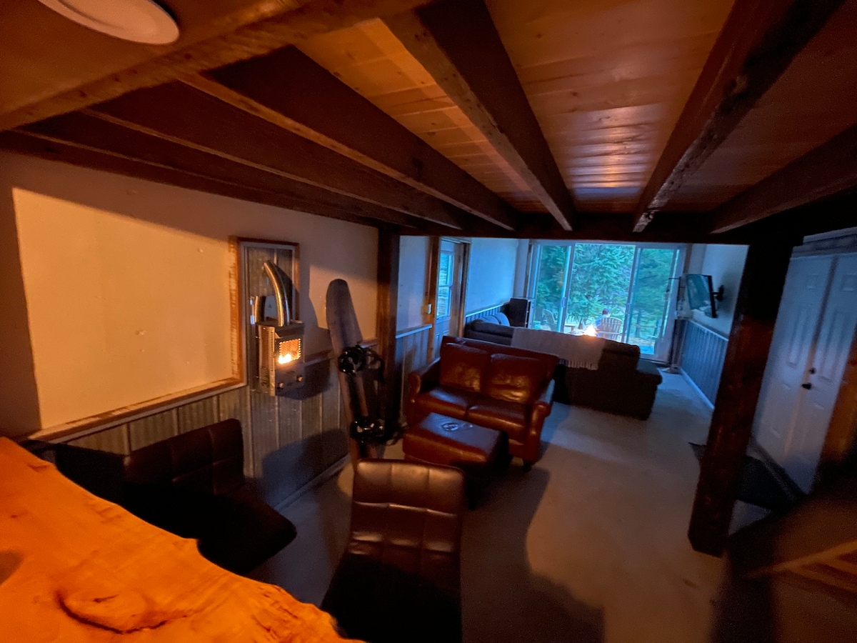 Den «nedre» hytta, et rolig feriested ved stranden med et eksklusivt privat boblebad med fantastisk utsikt over innsjøen. Opplev ro på sitt beste, hvor denne fantastiske eiendommen inkluderer en brygge, perfekt for båtentusiaster. Ta med båten, fiskestengene, til og med et telt, for det er rikelig med plass! Denne sjarmerende hytta har plass til opptil seks gjester, ett soverom med en queensize-seng, en Murphy-seng i stuen, uttrekkbar sovesofa. Skap uforglemmelige minner på dette overnattingsstedet ved innsjøen!