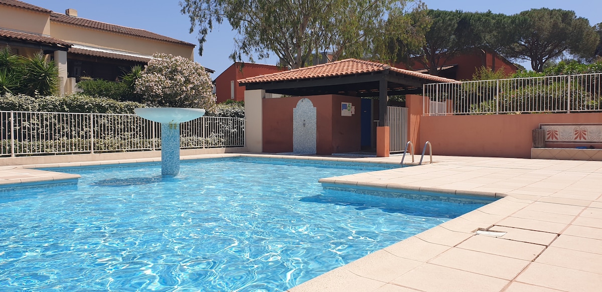 5 km til St Tropez/to soverom/klimaanlegg/basseng/spasertur til stranden
