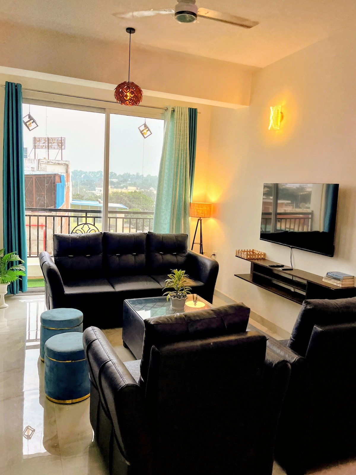 Velkommen til Kashi Gharana | En luksuriøs 3-roms leilighet av Odyssey8 Gå inn i et fredelig rom designet for komfort og ro.Fra mykt morgenlys til varme kvelder, reflekterer hvert hjørne av denne villaen Kashis sjel – ren, elegant og tidløs. Dette kommer du til å elske: - Romslig 3-roms leilighet med førsteklasses interiør- Fullt møblert med klimaanlegg, smart-TV og Wi-Fi- Velutstyrt kjøkken og spiseplass- Koselige balkonger og rolig atmosfære - Perfekt for familier, par og lengre opphold
