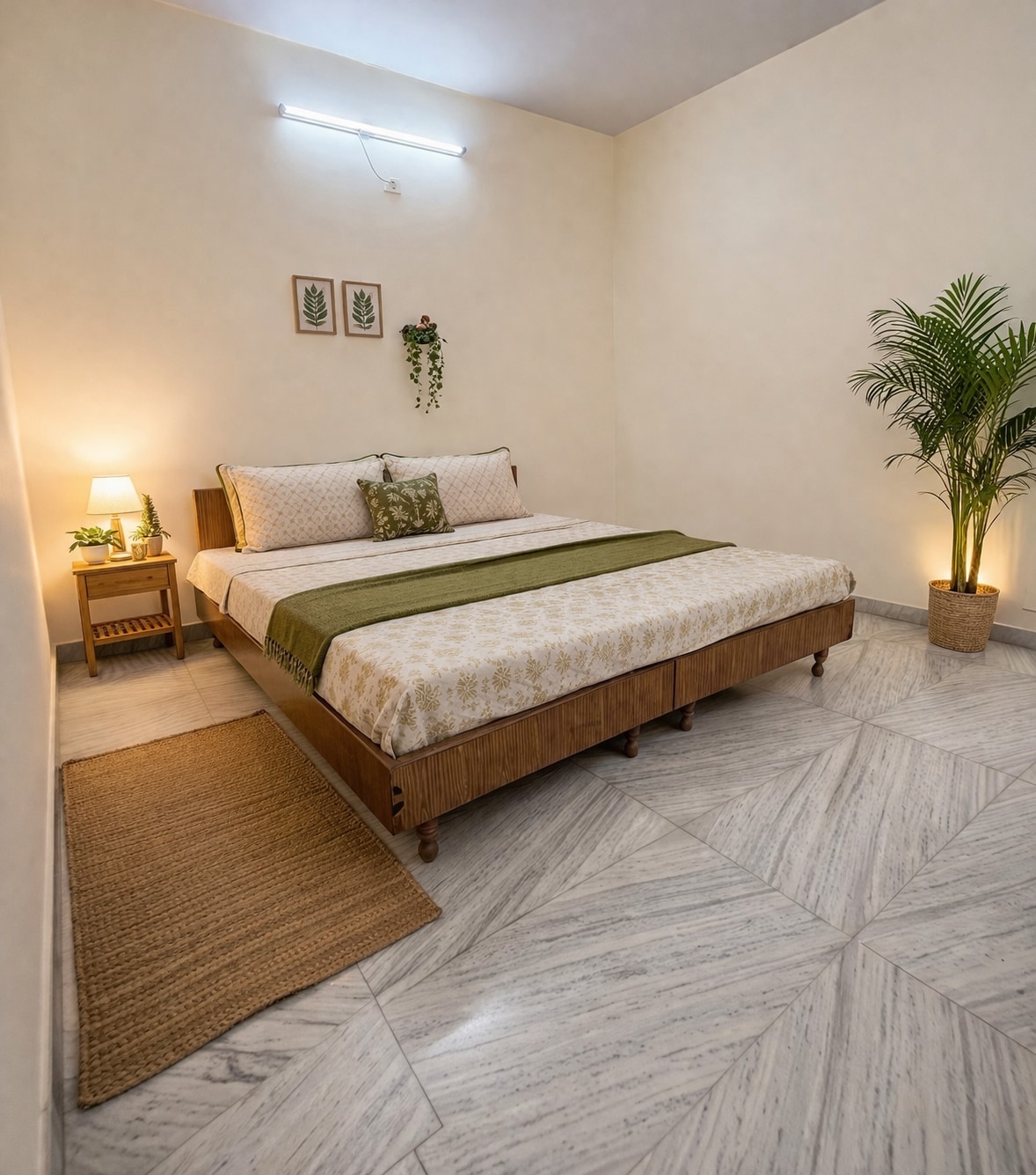 Experience refined living at Blue Bells, our elegant 3BHK serviced apartment where comfort meets sophistication. Each bedroom features an en-suite bathroom with premium fittings, while the chic living space and fully equipped kitchen ensure a seamless stay. Located in Varanasi’s exclusive Cantonment, Blue Bells offers privacy, style, and easy access to the city’s finest destinations — ideal for discerning guests seeking a luxurious home away from home.