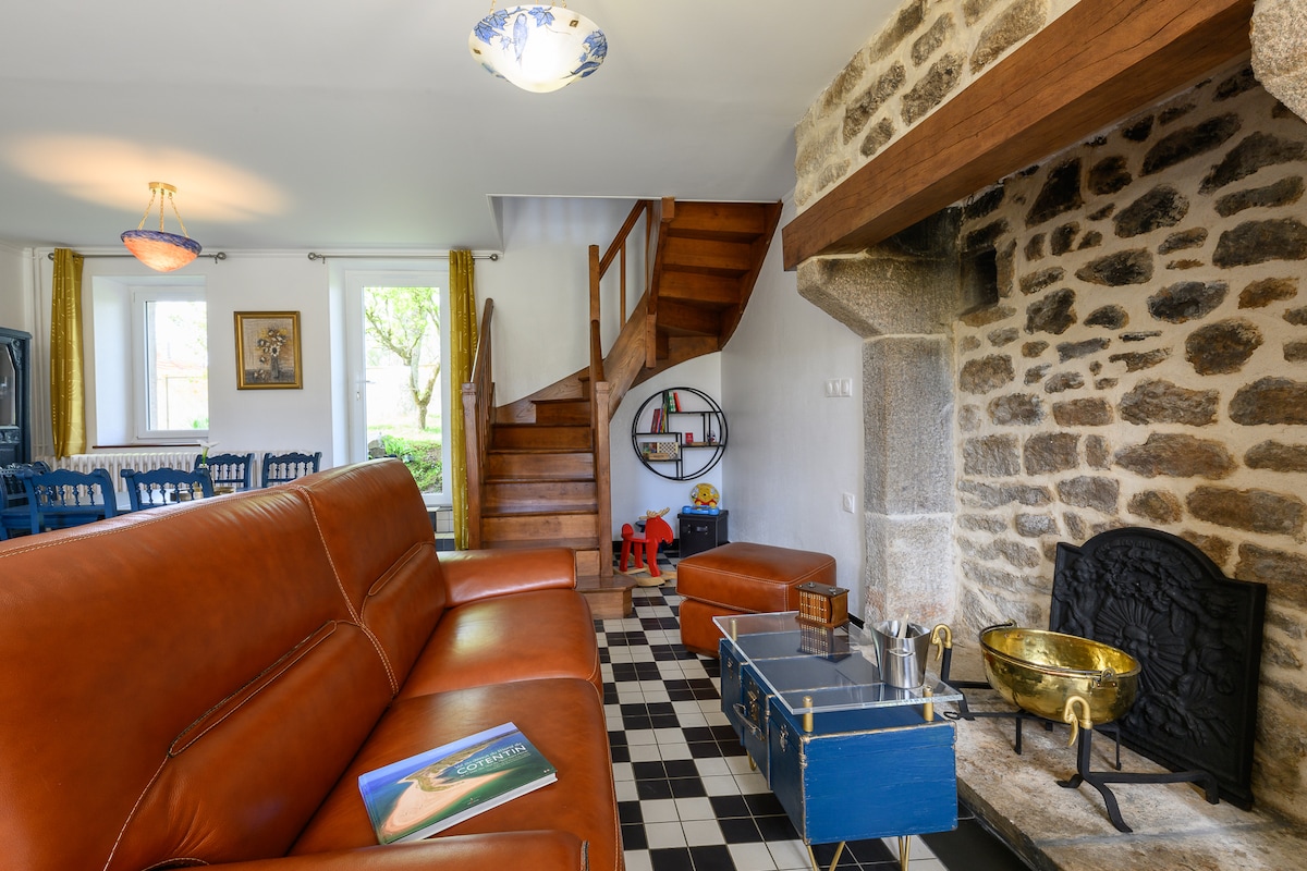 La bicyclette bleue, steinhytte i Fermanville, 5 minutter fra stranden, ideelt for et par. Huset vårt ble totalrenovert i 2023, og har beholdt sjarmen til gamle steiner. Det er ideelt for å ta imot et par med eller uten baby. Beliggende i hjertet av den typiske landsbyen Judea, vil du være ved starten av turstiene (GR223 og nær stranden). Beliggende i enden av landsbyen, vil du finne ro og hvile. Privat terrasse, en hage med trær og hagemøbler, grill.