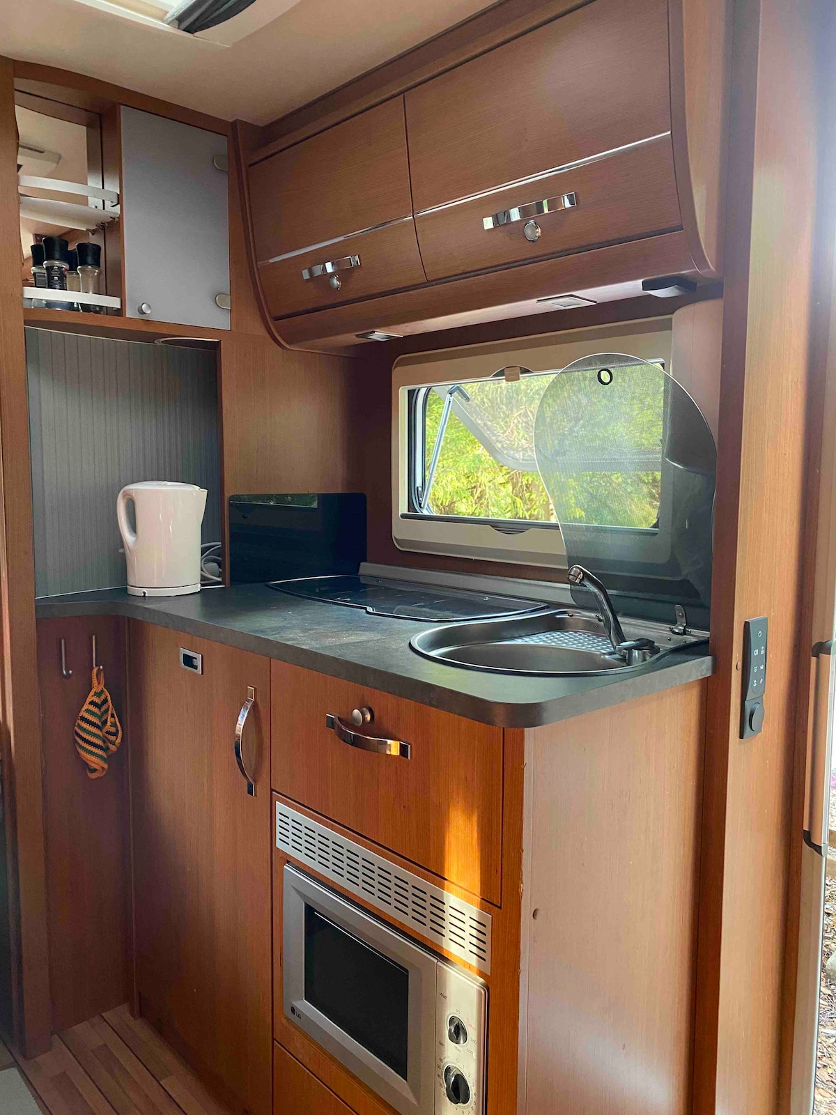 Hei ... Jeg bor på et sted å bo og tilbyr et fantastisk sted midt i skogen , 10 km til sjøen /badeområdene,butikk , restaurant Du kan være i hagen min og bare slappe av . Det er ikke trådløst nettverk eller TV . Hvis du trenger å koble fra hele verden... så er dette avsidesliggende stedet laget for deg . Bobilen har 2 senger Toalett Utendørsdusj Gasskomfyr, mikrobølgeovn, kjøleskap med fryser. Varme i gulvet. Markise Liten hund tillatt Velkommen , Annette
