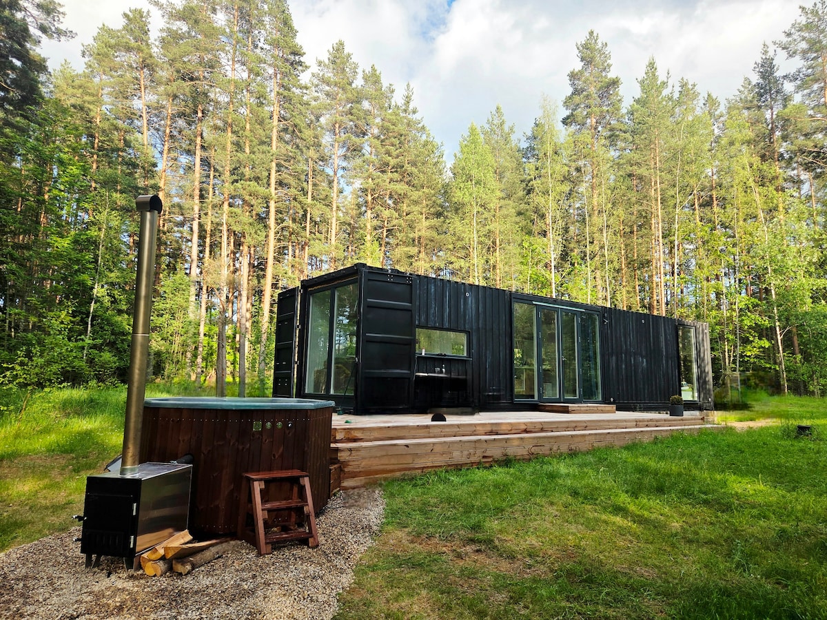 Privat minivilla i skogen med boblebad