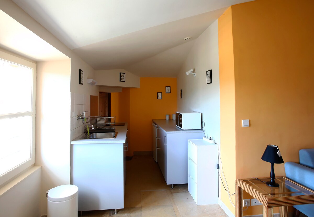 Fullstendig renovert leilighet i øverste etasje i et slott fra 1500-tallet, vendt mot sør, med utsikt over landsbyen og de okerfargede nyansene i den provençalske regionen i Colorado Kan bare leies for to personer, se også det andre utleiestedet (leilighet 2). Slottet er et overnattingssted med 34 senger, inkludert sovesaler og rom, og de to leilighetene er en del av det. Slottet huser også rådhuset.