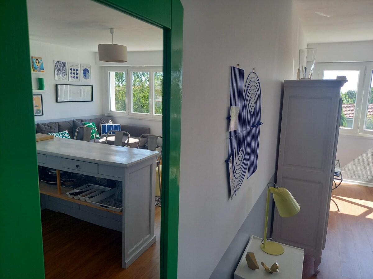 Velkommen til mitt barndomshjem, en romslig og lys familie på 160 kvm. mellom Royan og St Palais Sur Mer. Gratis gateparkering. Du kommer deg overalt til fots - Parkinngang, spill og dam: Bare 150 meter unna for avslappende øyeblikk i hjertet av naturen. - Stranden ligger 1,8 km unna. - Åpent marked: Hver dag i juli og august, 300 meter unna for å oppdage lokale produkter. - Kjøpesenter: 5 minutter med bil for alle dagligvarene dine.