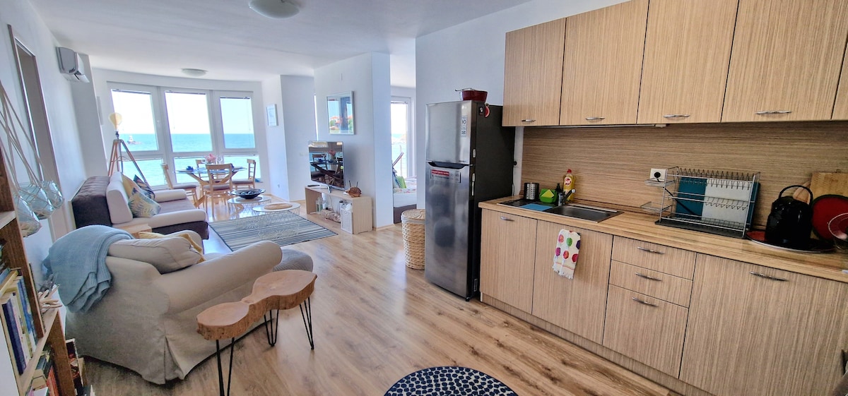 Стил, уют и морска магия се съчетават в Black Sea Stay – модерен апартамент с впечатляващ дизайн и гледка към морето. Наслади се на спокойствие, комфорт и първокласни удобства – просторен хол, напълно оборудвана кухня, удобна спалня и тераса за сутрешното кафе под слънчевите лъчи. Идеален за семейства, двойки и home office. На няколко крачки от плажа, парка, пристанището и красивите морски алеи. 🌊✨