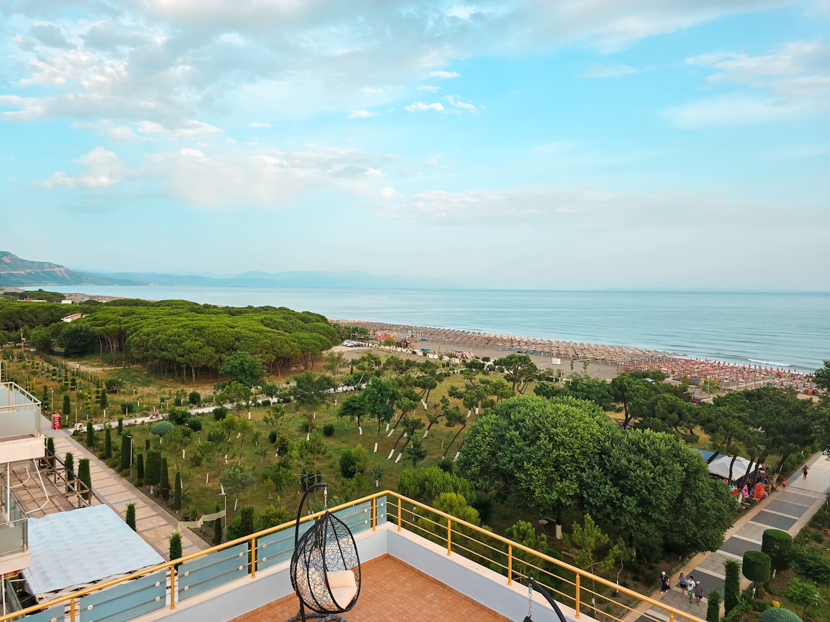 Fra dette sentrale overnattingsstedet har hele gruppen enkel tilgang til hva det måtte være. Det ligger foran havet – 200 meter unna. Det ligger i nærheten av acquaparc – 800 meters avstand. Det ligger i nærheten av luna parc – 800 meters avstand. Det er et strandvolleyballområde og fotballbane. Det er mange gode restauranter i nærheten (noen med levende musikk). Det er en lang promenade – 10 meters avstand fra leiligheten. Det er 30 km fra Shkodra by. 110 km fra Albanias hovedstad (Tirana). 35 km fra Montenegro.