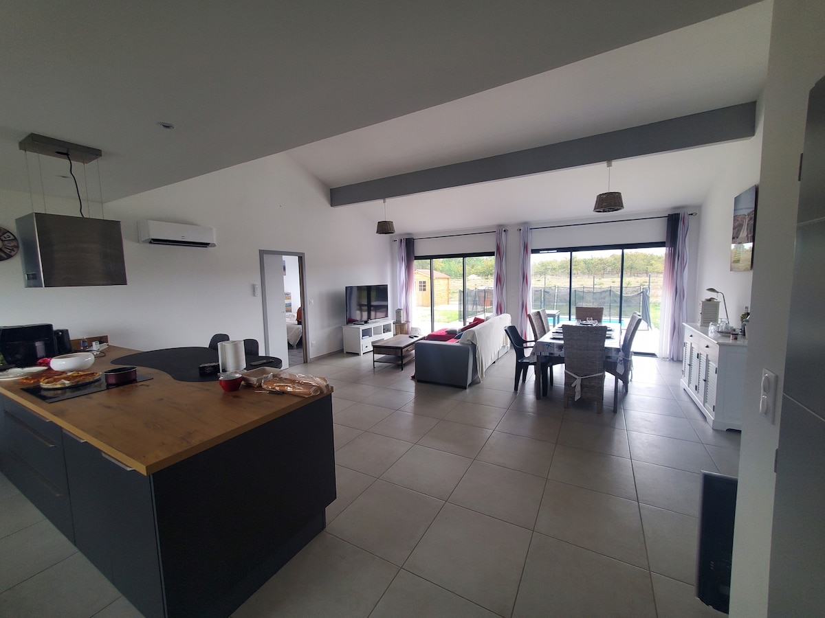 Feriehus i Montalivet. (Engelsktalende vert) Nytt hus for 6 personer, rolig beliggenhet 1,2 km fra havet (ca. 12 minutter å gå). Fullt utstyrt og møblert, du vil føle deg som hjemme! Består av 3 soverom, inkludert en master-suite, 2 bad totalt, 2 toaletter, en overbygd terrasse med grill/plancha/hagemøbler og utendørsbord. Fullt utstyrt kjøkken (oppvaskmaskin, induksjonsovn, mikrobølgeovn, vaskemaskin, kaffemaskin, brødrister osv.)