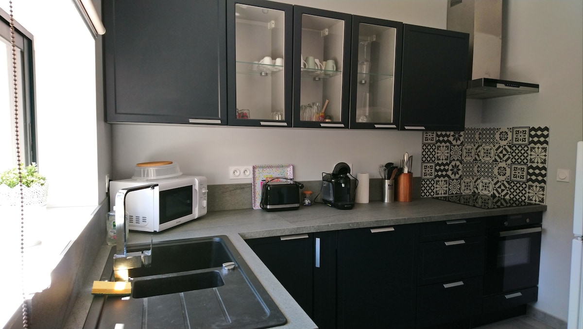 I første etasje i familieherregården vår kan du fordype deg i den autentiske sjarmen i en leilighet på 50 kvm som er gjennomsyret av historie. Med sine tidsbestemte lister og varme atmosfære er det den perfekte basen for å utforske regionen året rundt. Du finner et fullt utstyrt kjøkken, en komfortabel stue og alle fasilitetene for et virkelig herlig opphold.