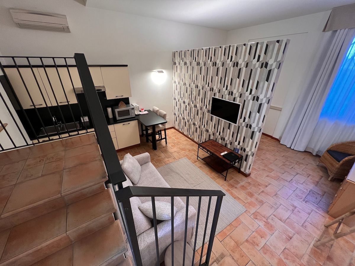 Velkommen til det fredelige tilfluktsstedet ditt i Mestre! Denne lyse og funksjonelle studioleiligheten ligger i et rolig område med gode forbindelser. Ideelt for enslige reisende eller par, det er den perfekte basen for å utforske regionen mens du nyter ditt eget private sted. 🛏️ Fleksible soveplasser 🌿 Eksklusiv privat terrasse med sitteplasser utendørs – perfekt for morgenkaffe eller avslapning om kvelden. 🚉 Bare fem minutters gange til Mestre tog- og busstasjon – nå Venezia på ti minutter!