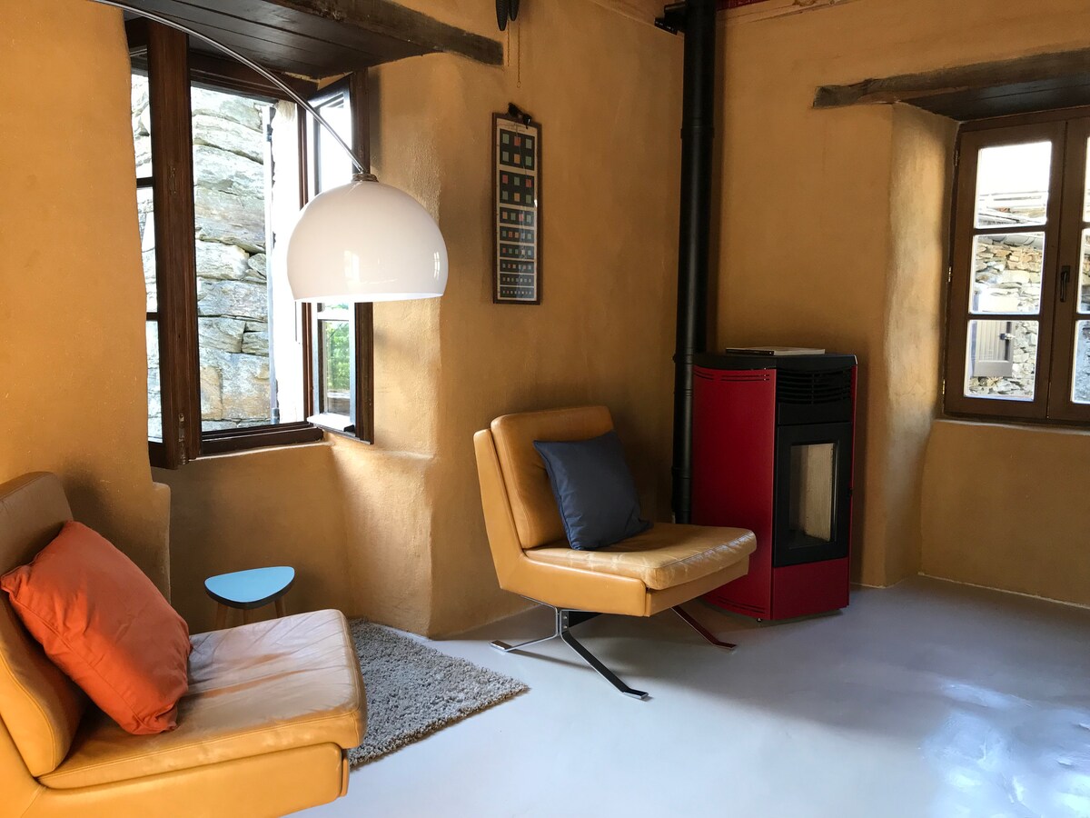 Et salig fredelig og vakkert tilfluktssted. Den renoverte hytta er et lite 2 etasjes hus perfekt for 2 personer, i en fantastisk eiendom på 94 dekar kastanjeskog, sublim opplevelse for naturelskere, som ønsker å komme bort fra kjas og mas, fantastiske turstier, fantastisk utsikt. Naturlig lite basseng på eiendommen, men det er en sublim badeplass på 9 km. Soverom og vedovn ovenpå, bad, separat toalett og åpent kjøkken nede. Privat terrasse.