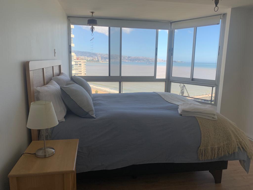 – Leilighet med klar utsikt over stranden og havet, første rad, 21. etasje – Foran Vergara-bryggen – Privat parkering, 2 smart-TV-er og Wi-Fi – For 4 personer, 2 soverom, begge med dobbeltseng – To komplette bad – Stor stue, terrasse med utsikt over kysten og havet – Amerikansk kjøkken – Dørmann døgnet rundt – Svømmebasseng, spill, tennisbane, vaskeri, grillplass – Gangvei, restauranter, puber, supermarked, Marina Arauco kjøpesenter, transport, kasino, håndverksmesse