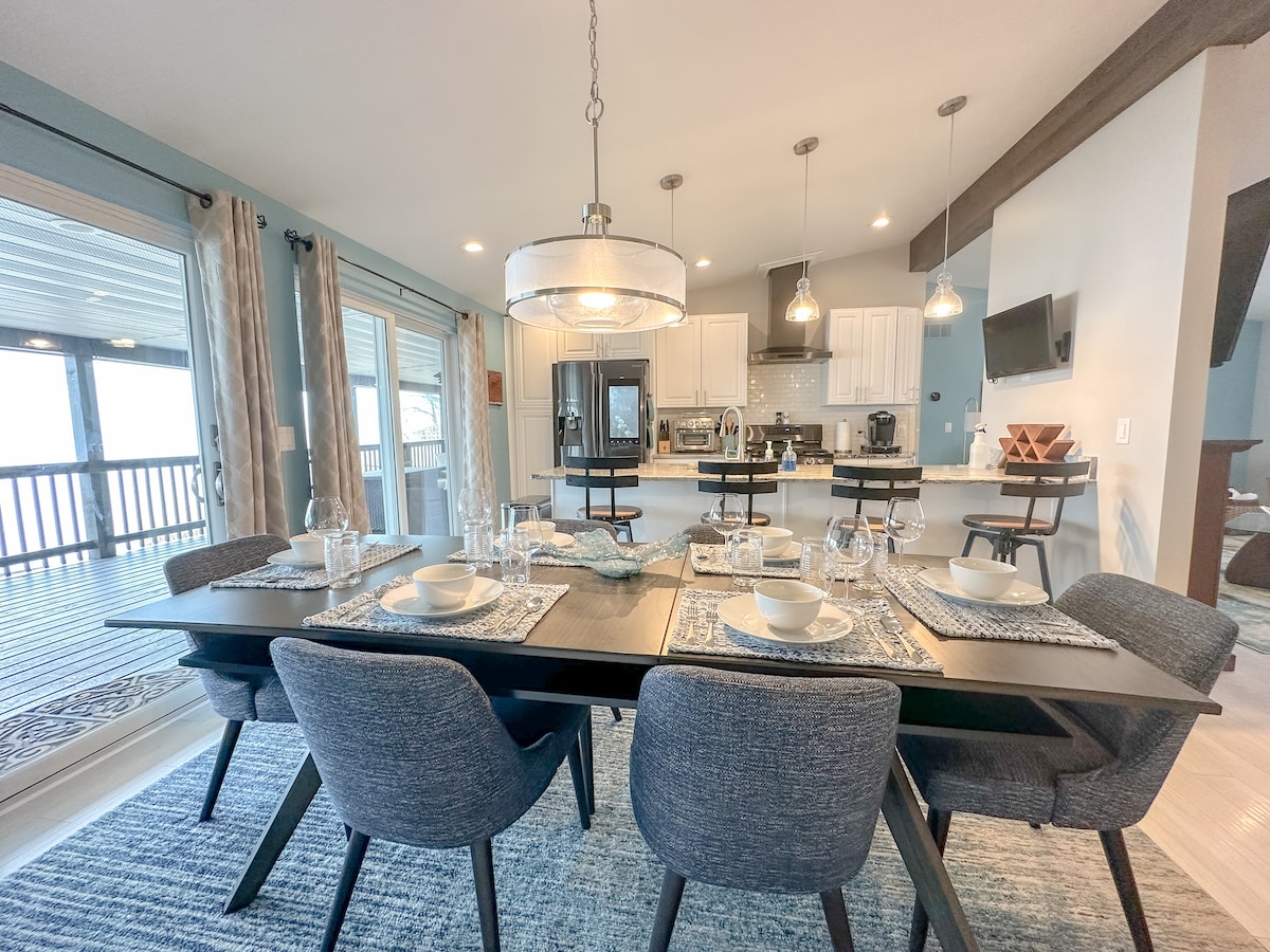 🛏 Tre koselige soverom med queen-senger og mørkleggingsgardiner. 🎯 Spillrom med arkade, Wii og brettspill 🔥 Boblebad og lyslenker for ultimat avslapping 🍽 Utendørs terrasse med spiseplass for seks personer. 🛋 Elegant og gjennomført design overalt 🍳 Fullt utstyrt kjøkken + kaffebar. 🐾 Dyrevennlig! I 📍 nærheten av Vermilion Beach, butikker og restauranter Perfekt for familier eller små grupper som ønsker å slappe av, lade opp og ha det gøy ved innsjøen!