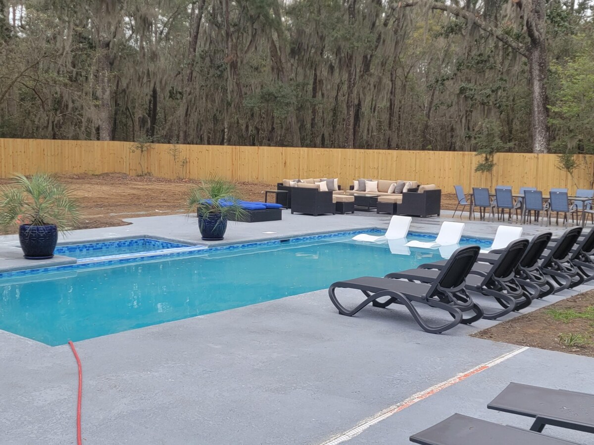 Privat basseng åpent hele året med utekjøkken. Oppvarmet basseng opptil 88 grader for $ 50 per dag. Hjemmet ligger bare 15 minutter fra sentrum og 30 minutter fra stranden, og er en del av et fuglereservat og et lokalsamfunn ved vannet. Den private båtrampen ligger over gaten, og i enden av kvartalet gir du enkel tilgang til Vernon-elven. Ta med kajakkene, kanoene eller motorbåtene dine og utforsk saltmarsken og barrierøyene i kyst-Georgia etter sightseeing i vakre historiske Savannah.