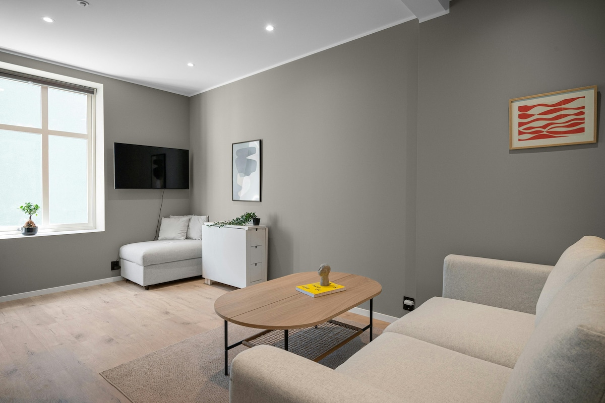 Nydelig leilighet beliggende midt i Bergen sentrum, i nærheten av kafeer og restauranter, shopping og severdigheter. Leiligheten er nylig oppusset med nye overflater og et moderne preg. Den er fullt møblert og utstyrt med alt du trenger for et komfortabelt opphold. Denne leiligheten har et åpent kjøkken og en moderne stue med sovesofa og TV med Chromecast, et soverom med to enkeltsenger og et bad i god størrelse med dusj og vaskemaskin.