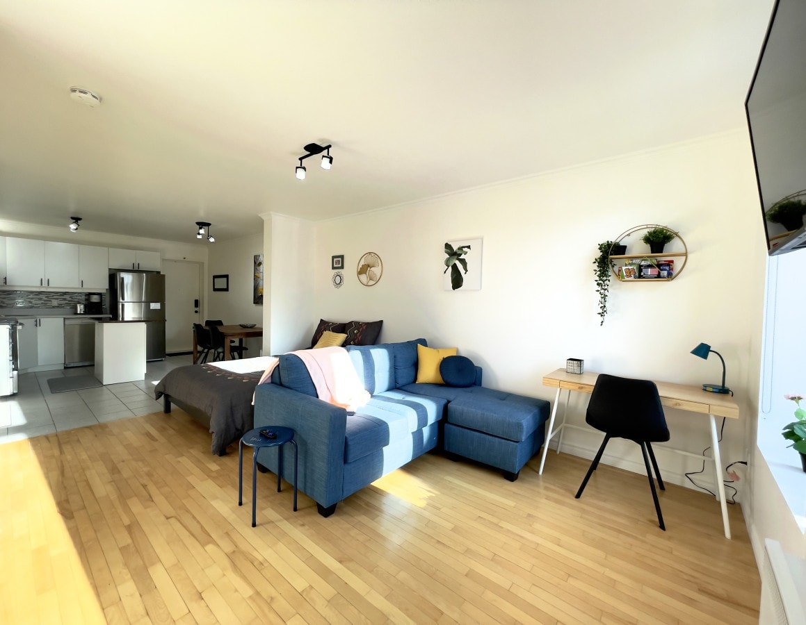 Søt og komfortabel studioleilighet nyrenovert. Fullt utstyrt kjøkken, spiseplass for 2, dobbel størrelse dyp sofa for å se filmer på TV-skjermen, queensize-seng, dusj (høyde på maks 6’6’ ’’/2m)… osv. Alt for å gjøre leiligheten vår til basen din mens du utforsker alt Quebec City har å tilby.