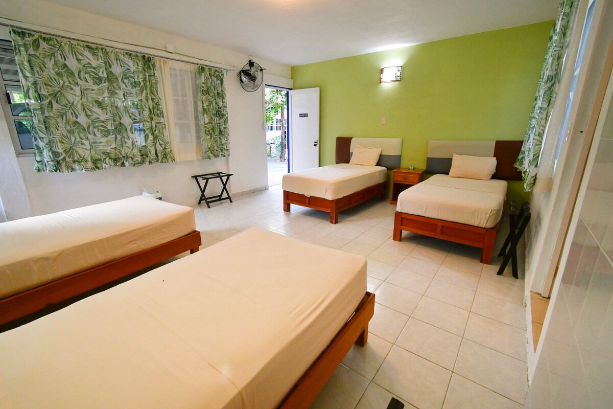 Skjult chukum-rom midt i naturen i Punta Allen-landsbyen. Dette private rommet er utstyrt med en king size-seng, privat bad, klimaanlegg og TV. Du vil føle deg komfortabel, omgitt av vakre strender og laguner. Dette er et paradis for fiskere! Eiendommen har en god beliggenhet bare 150 meter fra stranden og i nærheten av sentrum. Privat garasje tilgjengelig. Ingen klimaanlegg etter midnatt på grunn av strømbrudd, men vi tilbyr batterivifte hele natten.