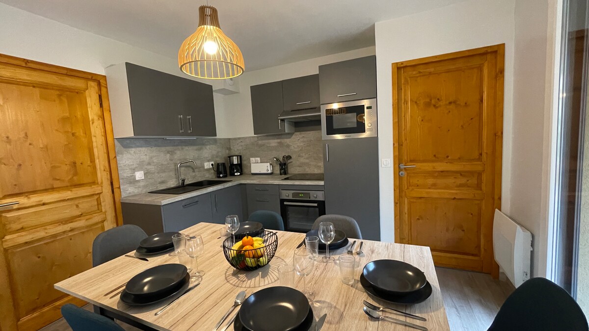 Nyt et stilig og sentralt hjem. Leiligheten vår er komfortabel, beliggende i hjertet av landsbyen St Lary Soulan, ved foten av gondolheisene, termiske bad og Sensoria-området, 150 meter fra taubanen. Fire diamanter sertifisert. Ett soverom, én sovesofa, utstyrt kjøkken, glass-keramisk komfyr, oppvaskmaskin, Nespresso, vannkoker, raclettegrill. Bad, dusj, håndkletørker. Adskilt toalett. Balkong Gratis parkeringsplass inkludert. Vaskemaskin og tørketrommel mot betaling