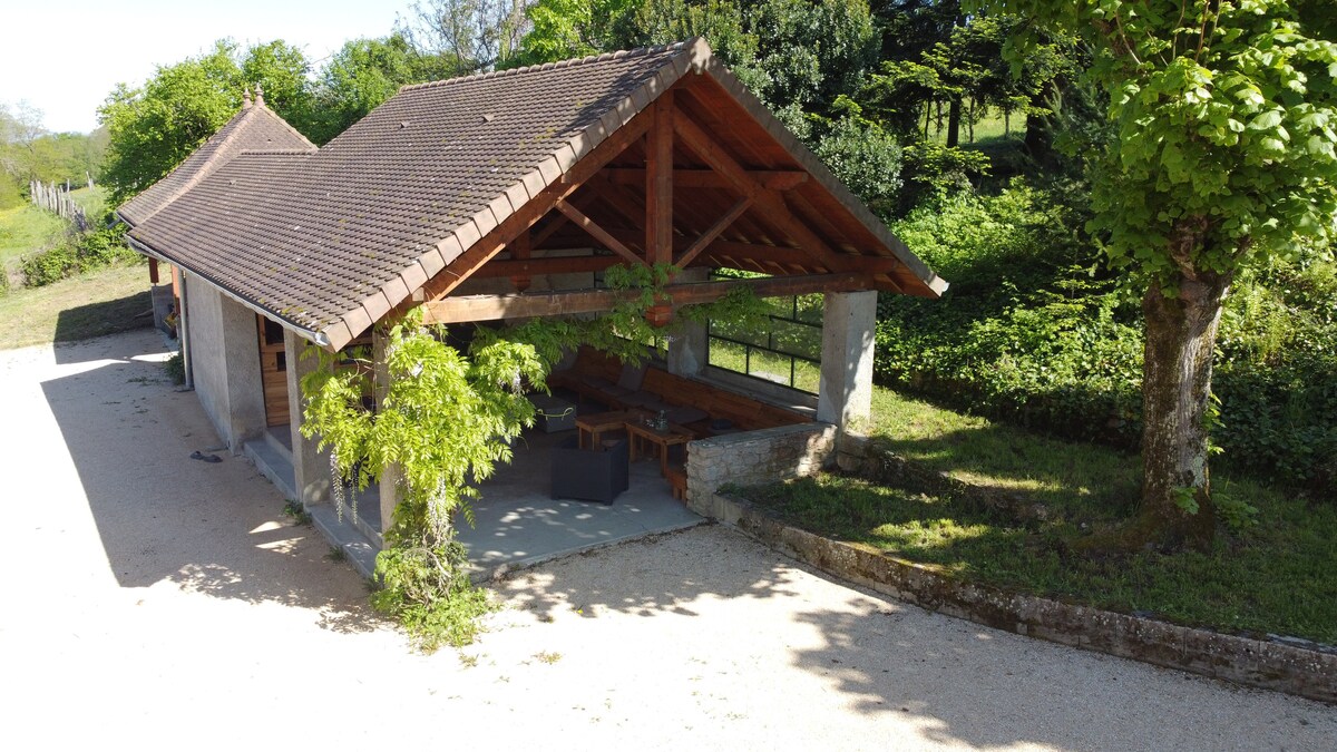c'est comme un endroit secret cette petite maison posée à flanc de colline avec une vue merveilleuse sur le lac complétement indépendante, construite à l'entrée de la propriété, elle est sans vis à vis, avec un confort haut de gamme, une grande terrasse de 70m2 avec un spa privatif, sous abri, ayant en ligne de mire le lac. Cette maison est uniquement pour 2 personnes adultes sans enfant (aucun rajout de personne supplémentaire n'est possible).