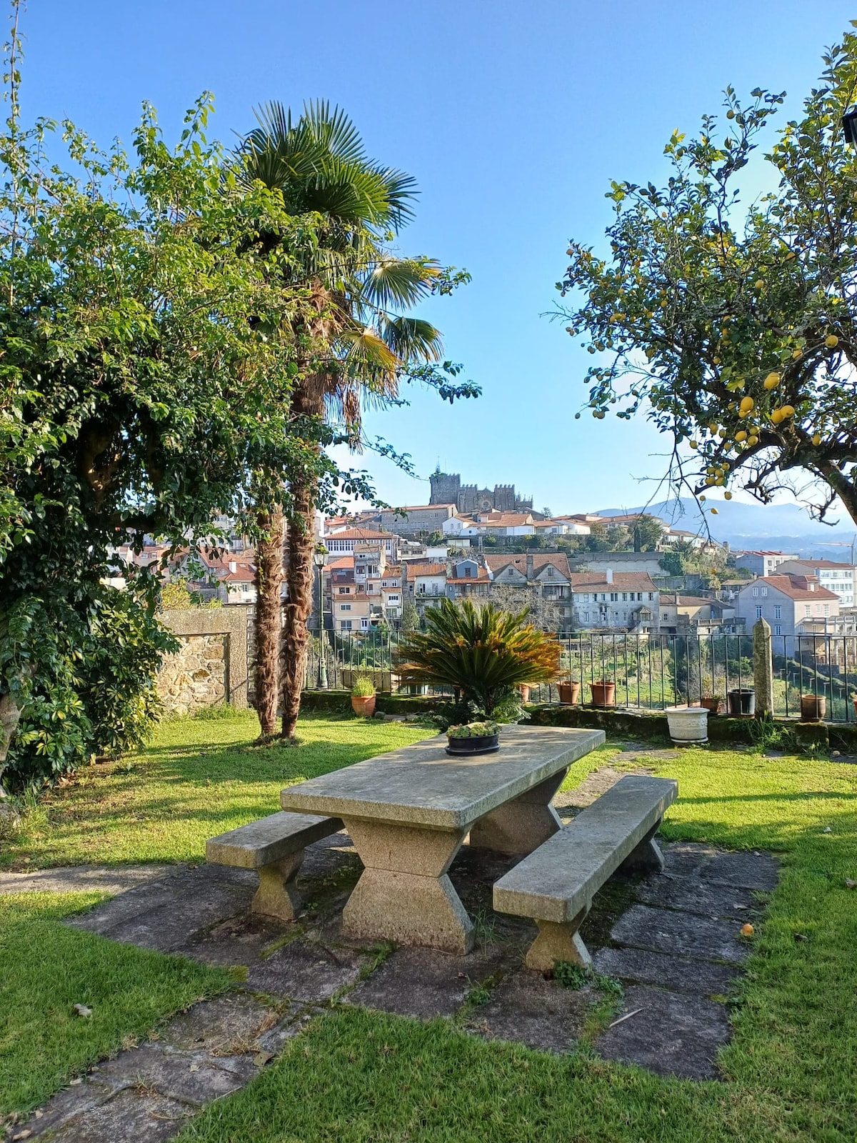 Leilighet til leie med loftype loftsdistribusjon, i første etasje i et hus som ligger midt i en vakker hage med basseng. Bassenget er med saltvann, det er inngjerdet og har et barneområde og et avslapningsområde. Det er grill og utendørsbord. Leiligheten har egen inngang og terrasse. 5 min gange fra det historiske sentrum av Tui. 20 km fra Vigo flyplass og 100 km fra Santiago og Porto. Stranden ligger mindre enn en halvtime unna med bil.