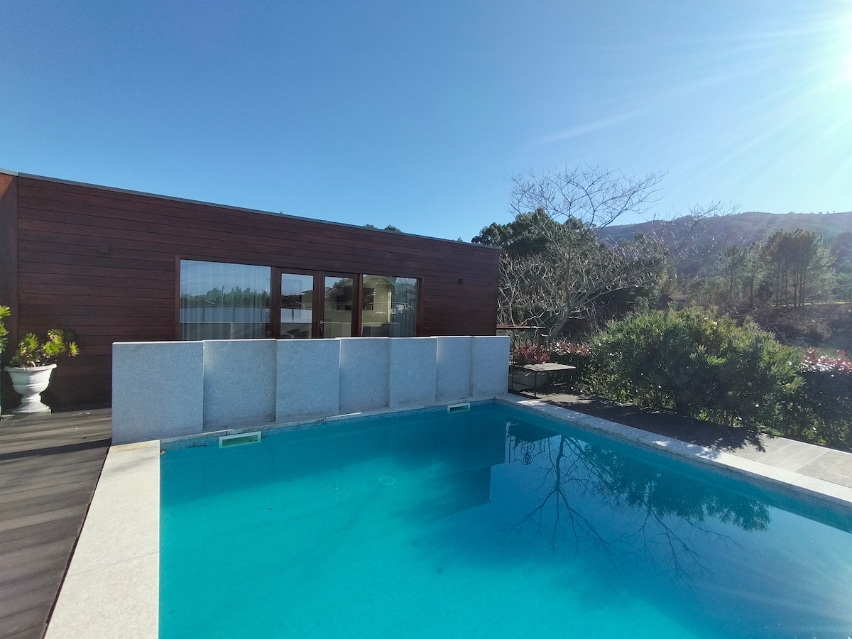 Fullt renovert hus med svømmebasseng, 1 km å gå fra Vila Praia de Âncora-stranden. Med tre suiter, fullt utstyrt kjøkken og moderne og komfortable overnattingsmuligheter, kan gjestene nyte en hageplass som støtter bassenget, med utmerket soleksponering, ideelt for øyeblikk av fritid, hvile og privatliv. Den har privat parkering, og beliggenheten gjør at du kan nyte stranden og øyeblikk av avslapning i naturen, gitt nærheten til elver og naturreservater.