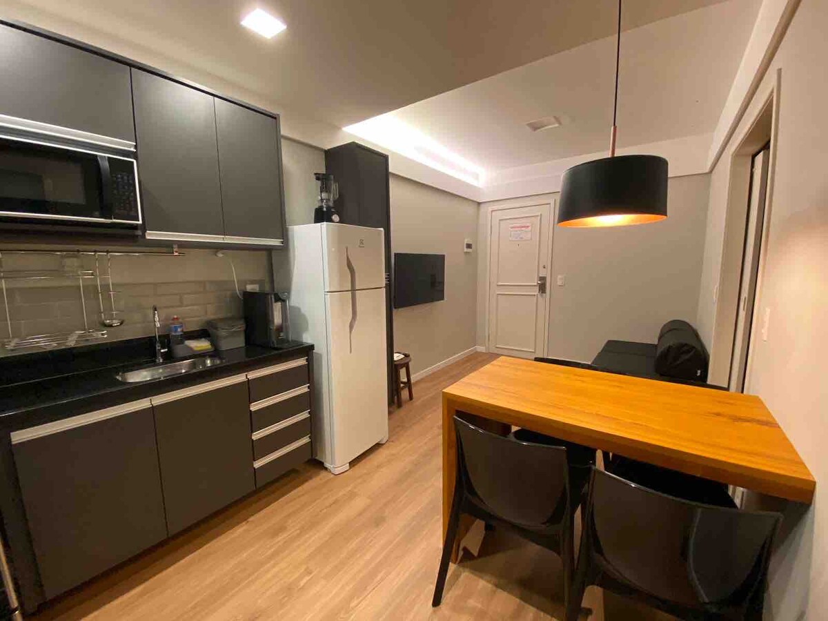 🏠 Stedet Nyt en praktisk, koselig og godt plassert leilighet! Ideelt for de som søker hvile, bekvemmelighet og enkel tilgang til de viktigste punktene i byen. Suite med komfortabel queensize-seng Integrert stue med amerikansk kjøkken Behagelig balkong for å slappe av Trådløst nettverk, kabel-TV og døgnåpen concierge Én tilgjengelig parkeringsplass Kjøkkenet er fylt med: • Mikrobølgeovn • Minibar • Komfyr • gryter, bestikk, tallerkener, kopper og kopper merk: GARASJEN ROMMER IKKE STORE BILER.