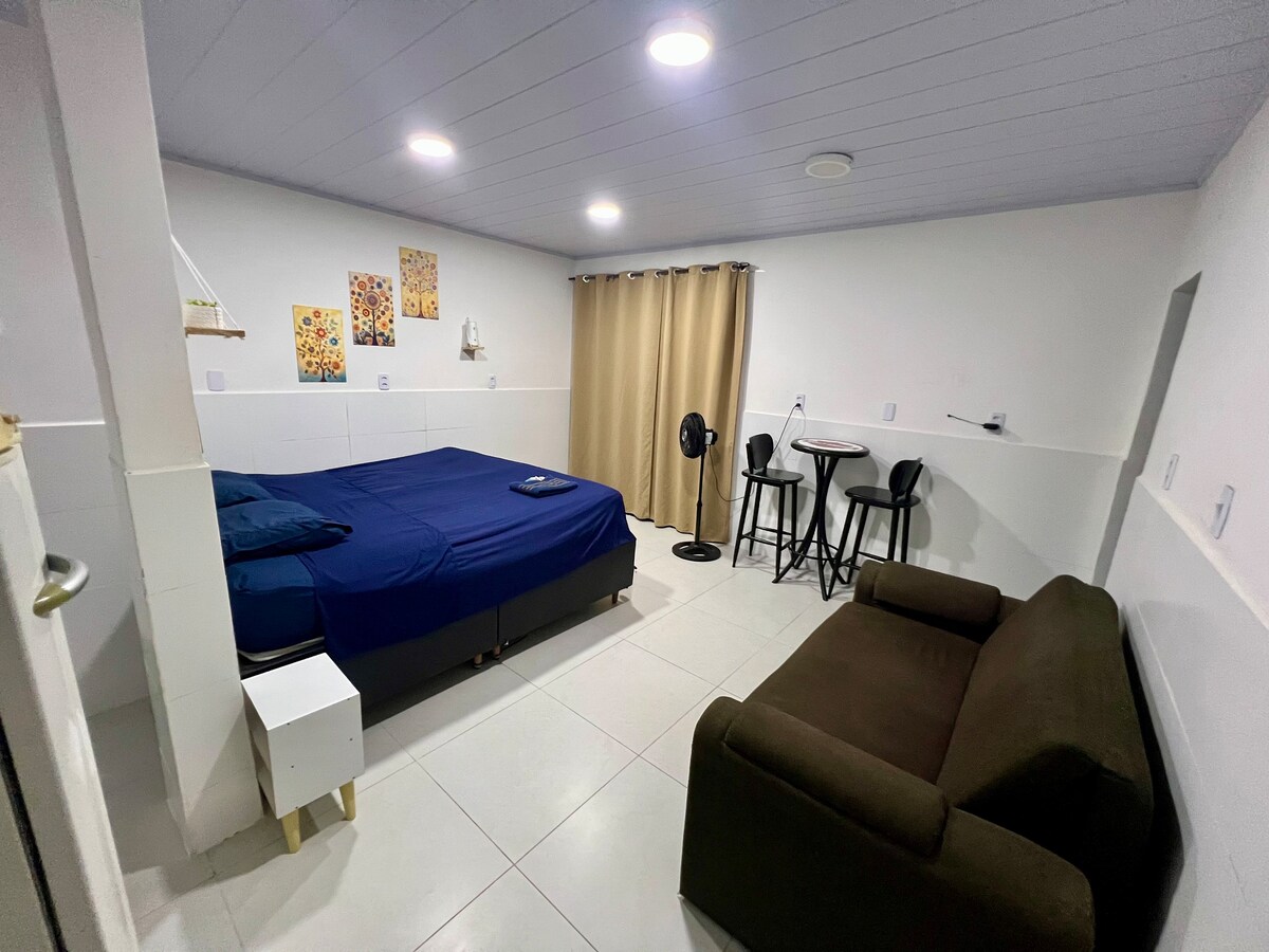 Velkommen til Ilha das Garças Studio 4! Komfortabelt og fullt utstyrt sted i Vila Velha, ideelt for par eller praktiske opphold. Den har en komfortabel seng, et fullt utstyrt kjøkken, en spisebenk, et privat bad, trådløst nettverk og klimaanlegg. Rent, ryddig og godt opplyst sted, utformet for å gi deg komfort og sjelefred. Navnet på studioet er inspirert av lokale landemerker og angir ikke den nøyaktige beliggenheten. Vi anbefaler å sjekke kartet før bestilling.