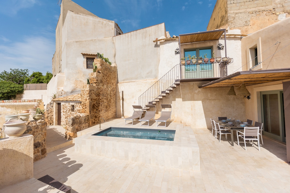 Kunstnerisk renovert steinhus med utsikt over Noto