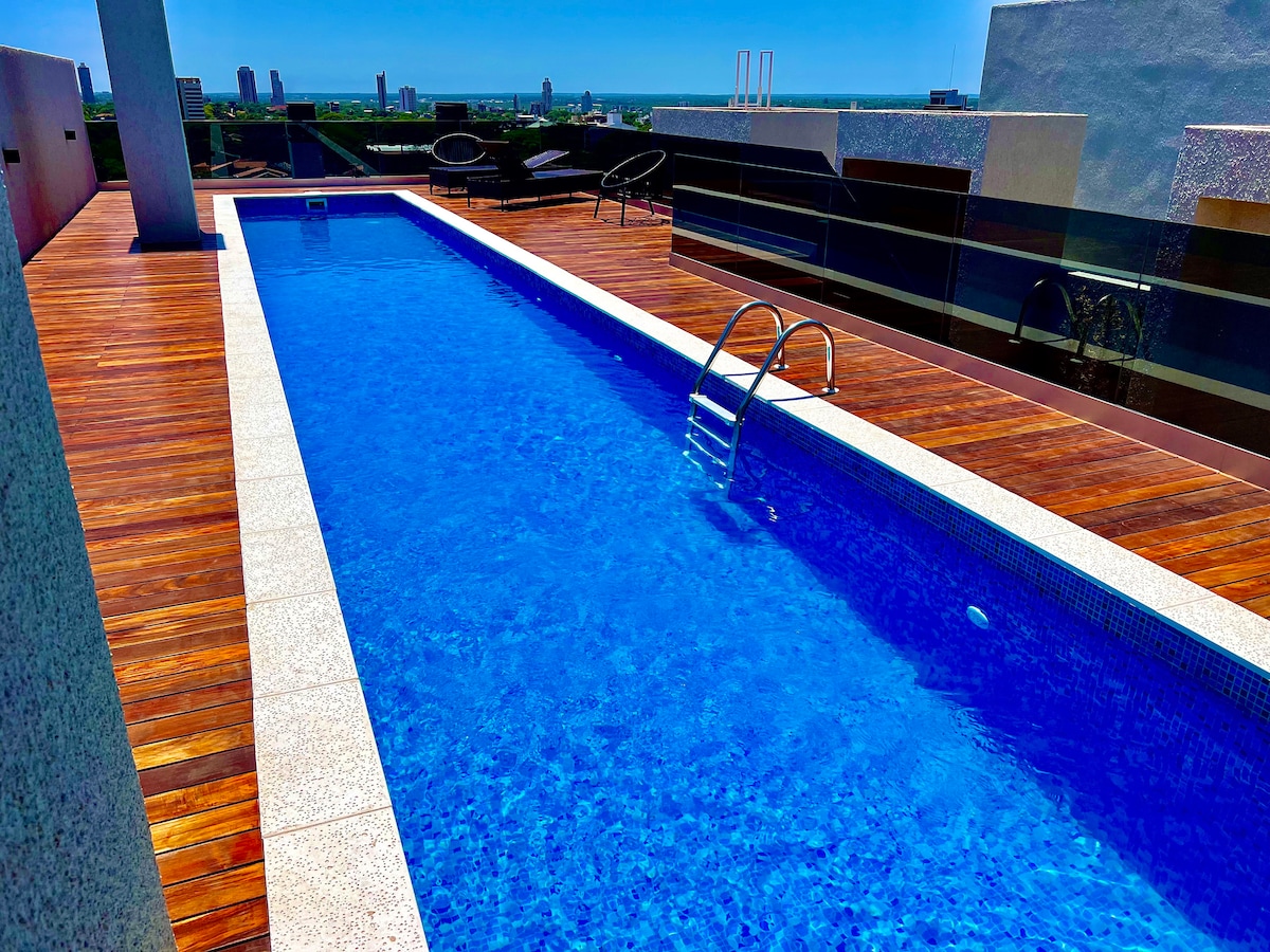 Moderne leilighet, superutstyrt, med balkong, grill, panoramautsikt fra 24. etasje og utmerkede tjenester: - badebasseng - kontorfellesskap - Quincho - en kino – Parkering ved egen heis (liten/middels bil). - sikkerhet døgnet rundt Flott område: – 5 minutter fra Corporate Axis, Shopping del Sol og Paseo La Galería. – ti minutter fra Costanera og Héroes del Chaco-broen. – 15 minutter fra Silvio Pettirossi internasjonale lufthavn. Inkluderer trådløst nettverk · smart-TV · premium madrasser