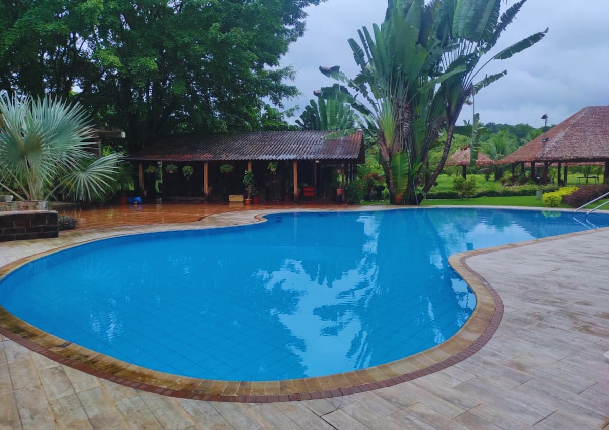 Regnskogshytte! Inne i Cumarú Jungle Lodge naturreservat. Et paradissted, med naturlige bassenger, bassenger, utendørs boblebad med mye mer! To etasjer fanger lyden av bekken for en himmelsk drøm. Høydepunktene inkluderer de romslige terrassene med avslapning, grill, bordtennisbord og oppvaskmaskinbord, et komfortabelt internt sosialt område og hengekøye!