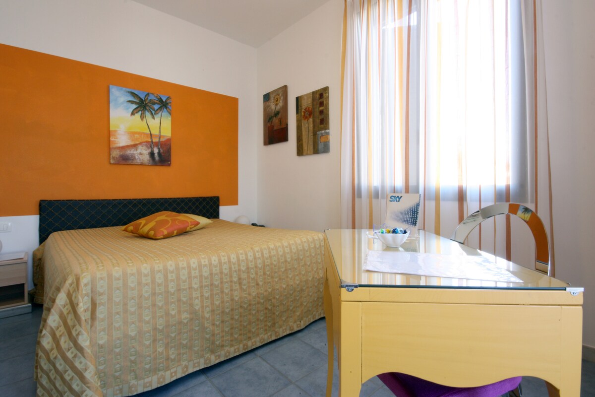 Camera arredata con gusto, letto matrimoniale confortevole ed accessoriata: balcone con vista, Wi-Fi, TV, climatizzatore, riscaldamento autonomo.