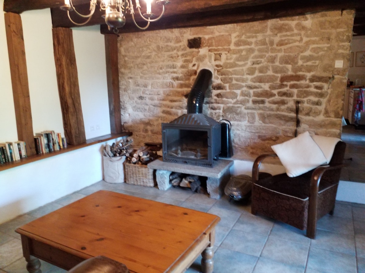 Vår hytte "Jardins de lune", som ligger ved siden av hjemmet vårt, har plass til opptil 6 personer i 3 soverom, og ligger 2 km fra Saône og Véloroute 50 La Voie Bleue. Med egen inngang og utsikt over en stor hage og åkrene, vil det være en ideell ramme for hvile og avslapning. Nylig innredet med naturlige materialer (tre, halm- og jordvegger) som gir det et enkelt og varmt utseende, er hytta godt isolert og behagelig året rundt.