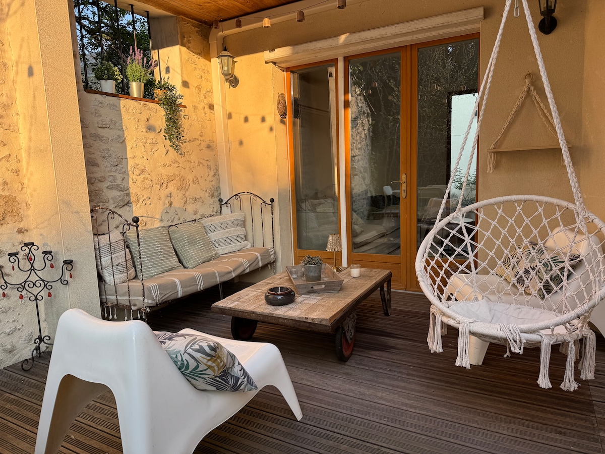 🌅Så snart du passerer døren til La Parenthèse de Villemandeur, omslutter en myk og beroligende atmosfære deg. Naturlig lys strømmer gjennom stuen og avslører et varmt interiør hvor tre, naturlige fargetoner og den fredelige hagen danner en ekte kokong. Her inviterer alt deg til å senke farten, puste og nyte et avslappende opphold, i nærheten av sentrum, men langt fra kjaset og maset. ✨En pause med ro i hjertet av Villemandeur. Bestill oppholdet ditt nå!