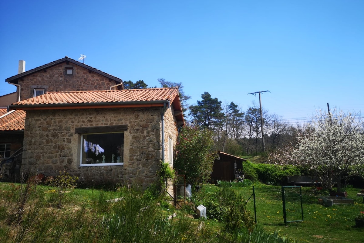 Renovering av huset til Juliette fra 50-årene. I nærheten av landsbyen Villerest. Steinhus med karakter. Kom og lad opp batteriene i vår hytte sammen med familie eller venner. Avslapping og ro garantert. Alt er tenkt for å gi deg et hyggelig opphold. Du vil være 800 m fra golfbanen Domaine de Champlong med spa og gourmetbord, ridesentre i nærheten, mange turstier, Lac de Villerest 2 km unna, vinmarkene på Roannaise-kysten å oppdage.
