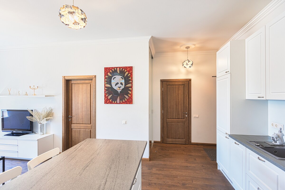 En moderne ettromsleilighet på 70 kvm med alle bekvemmeligheter i gangavstand fra gamlebyen i Vilnius. Stor stue med fullt utstyrt åpent kjøkken, bad med dusj og stort badekar, soverom med treskodder for mørke, lydanlegg for romantiske kvelder med vin.