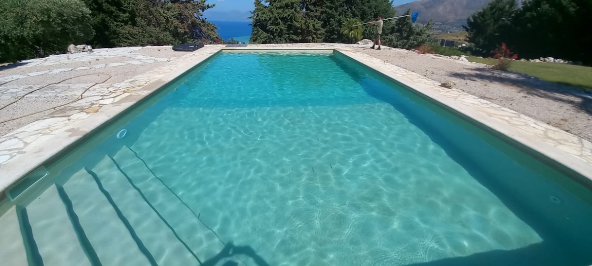 The villa is located only 3 km far from Castellammare del Golfo and consists of three bedrooms, two bathrooms with tub and shower and a laundry room, large dining room, a kitchen and a very large and beautiful Heated swimming pool with hydro-massage . The swimming pool, with a beautiful view on the sea, is always open but it is heated from MARCH TO NOVEMBER. it works very well when the outdoor temperature is more then 15 degrees.