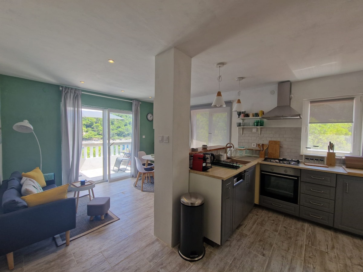 The apartment is set in a beautiful and tranquil bay Parja, about 3,5km outside of town. Steps down to the private deck on the sea. Great location for relaxing, swimming, walking, and cycling. Pine forests, olive trees, blue crystal clear sea, and singing crickets are the treasures of this quiet bay. Being away from the crowds. Peaceful location, amazing scenery. ➤Follow our story on IG @littleseasideparadise