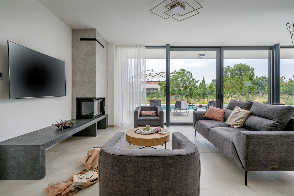 Stylish villa near Rovinj with picture worthy pool, sunk in hot tub, sauna. Wake up to lush, panoramic valley views. Couples and family-friendly, a short drive to adventure park, Brijuni National Park, dinopark, medieval towns & local cuisine. It is a true green escape for anyone looking to get back to nature with all the comfort of modern living. Fully equipped for cooking and entertainment in 2600 m2 of garden (football, speed ball, badminton & pool fun) for your kids and loved ones to enjoy.