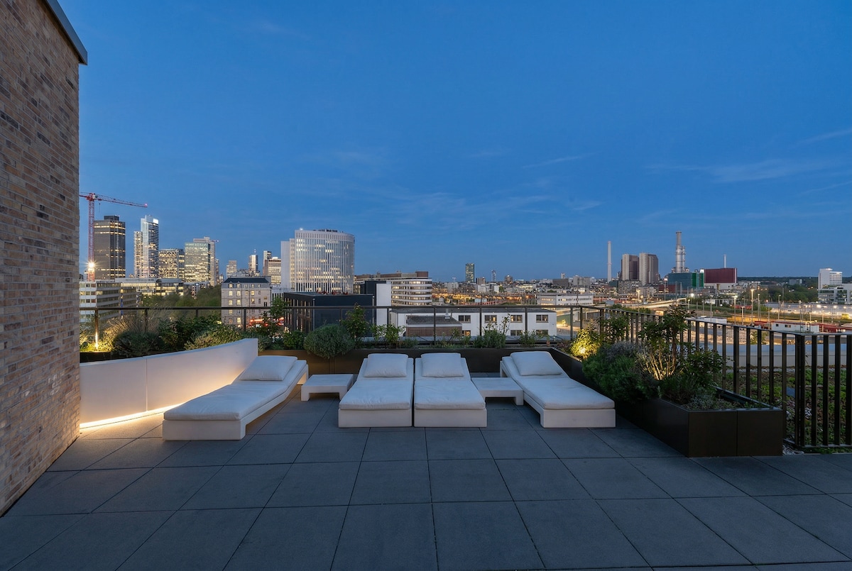 Genießen Sie ein wundervolles Erlebnis in diesem wunderschönen und zentral gelegenen Apartment mit toller Aussicht vom Toproof auf die Skyline von Frankfurt. Nyt en fantastisk opplevelse i denne vakre og sentralt beliggende leiligheten med flott utsikt over Frankfurt skyline fra toproof. Nyt en fantastisk opplevelse i denne vakre og sentralt beliggende leiligheten med flott utsikt fra taket over Frankfurts skyline.