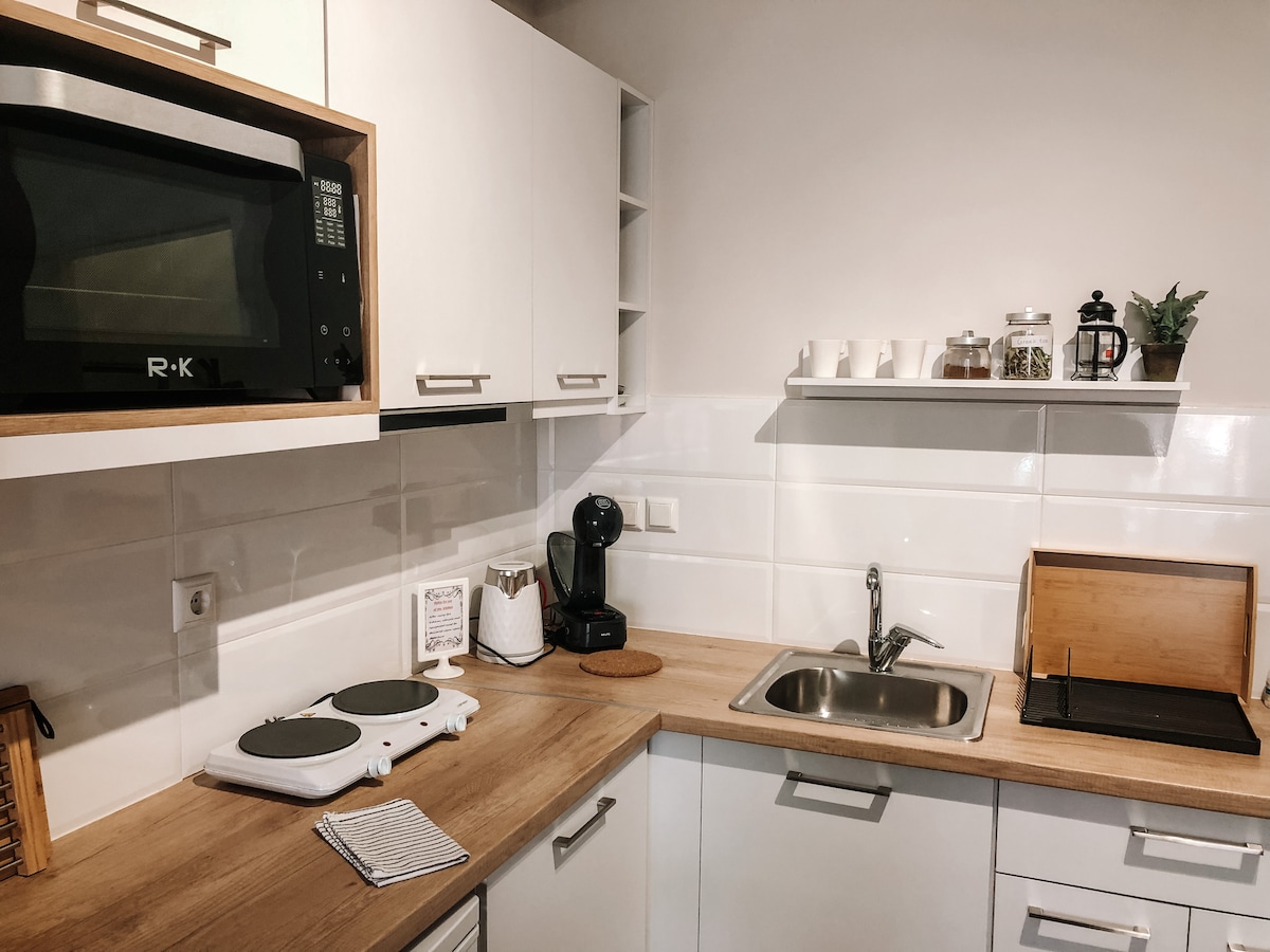 Situated in the heart Centre of Volos, with a 4min Walking Distance to the magnificent Port. Consisting of 1 bedroom, living room with 2 sofa beds, bathroom & kitchen, all sparkling clean. With 32''smartTV-NETFLIX. Ideal to accomodate 5 member-families, travelers, couples& business-guests.Next to a bakery&to the famous Koumoundourou road,surrounded by shops,cafes & restaurants.You can find the latest fashion within your reach.Energetic during day yet relaxing during at night! 5 star hospitality!