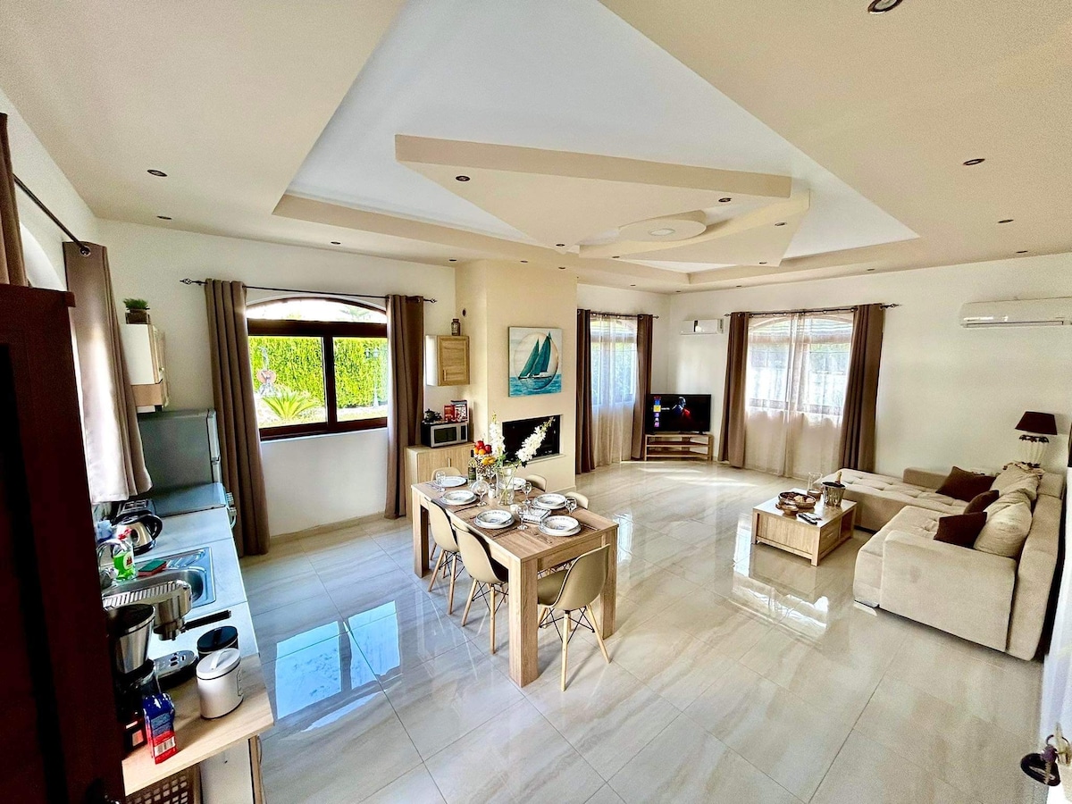 Newly built luxury pool villa (fully Air-conditioned and ceiling fans) A stunning 150 sqm luxury villa nestled in a lush green garden in the picturesque town of Ialyssos, just 7 km from both the airport and the town of Rhodes. A short 5-minute walk will take you to the beautiful Ialyssos beach, where you can explore excellent bars, restaurants, car rental services, supermarkets, a taxi station, and more. Relax by our pool, whether basking in the morning sun or enjoying a drink in the evening.