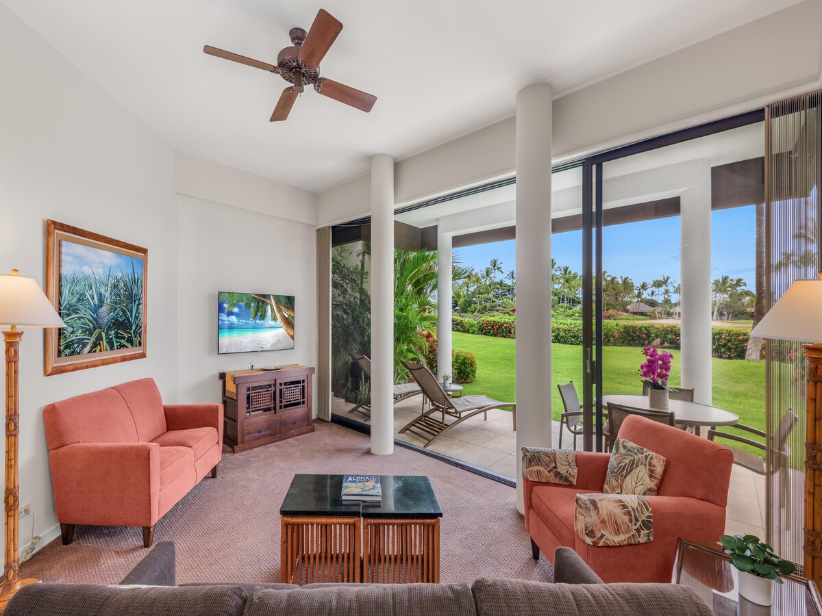Leilighet i første etasje med utsikt over Mauna Lani Golf.