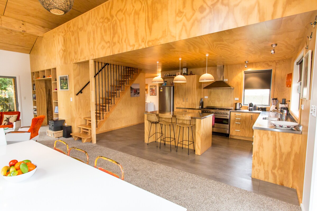 Nyt komforten av et helt hjem for deg selv. Perfekt for en helgetur eller et lengre opphold! Gjemt bort i en rolig gate, er du bare noen øyeblikk unna landsbyens sjarm, inkludert de lokale markedene hver lørdag. Vi er glade for å være vertskap for mer enn fire gjester – en liten tilleggsavgift på 25 dollar per person per natt gjelder etter fire. God beliggenhet Gå til dagligvarebutikk, kafé, bar og park. Kort kjøretur til Knottingly Park, Waitaki-dammene og snøområder. En avslappet, fruktfylt, komfortabel base for å slappe av og utforske