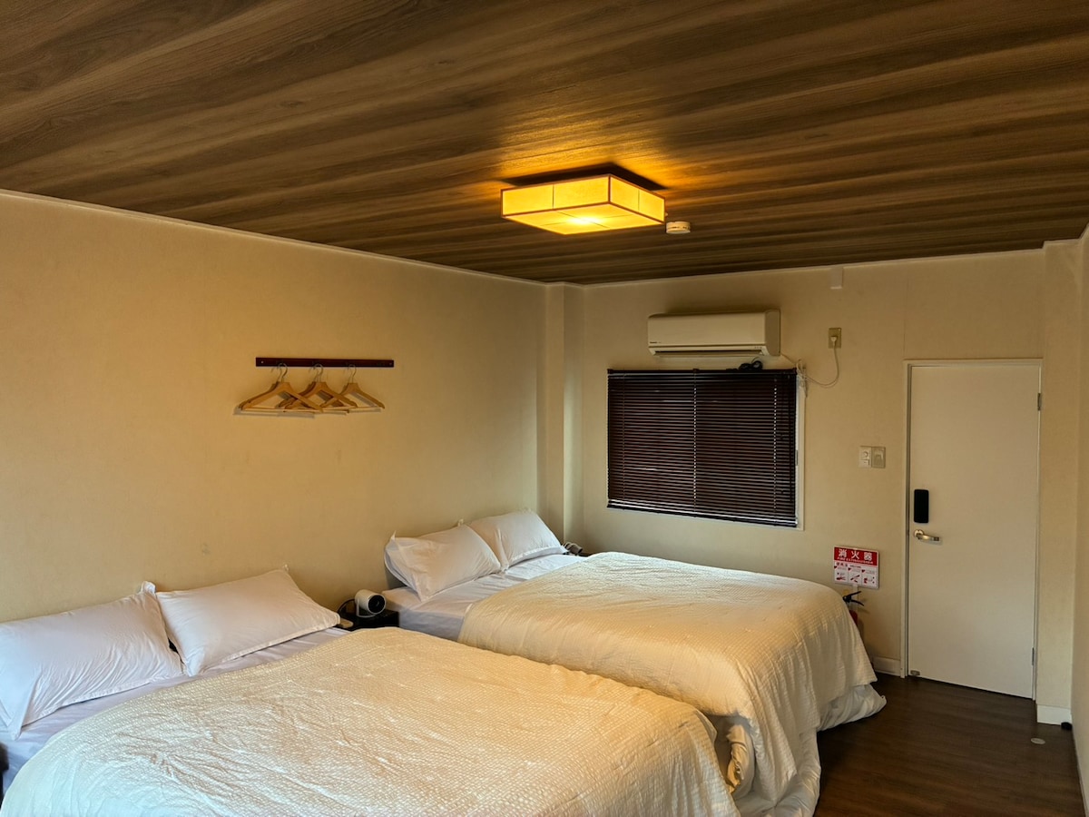 Huset er utleid som en enhet (prisen øker etter antall personer). 16 tatami (8 tatami 2 rom) stue og soverom og 6 tatami soverom 2 rom kan huse opptil 8 personer. Det er fullt utstyrt med badekar, toalett, vaskemaskin, kjøkken og kjøleskap. Ansiktshåndklær og badehåndklær er inkludert. Gratis Wi-Fi. Rommet ligger i andre etasje, og siden det er vanskelig å høre lyder fra naboene, er det et perfekt sted for familier med små barn eller for de som ønsker å tilbringe tiden i ro. Det er lite trafikk og få fotgjengere rundt huset, så du kan tilbringe tiden her i ro og fred.