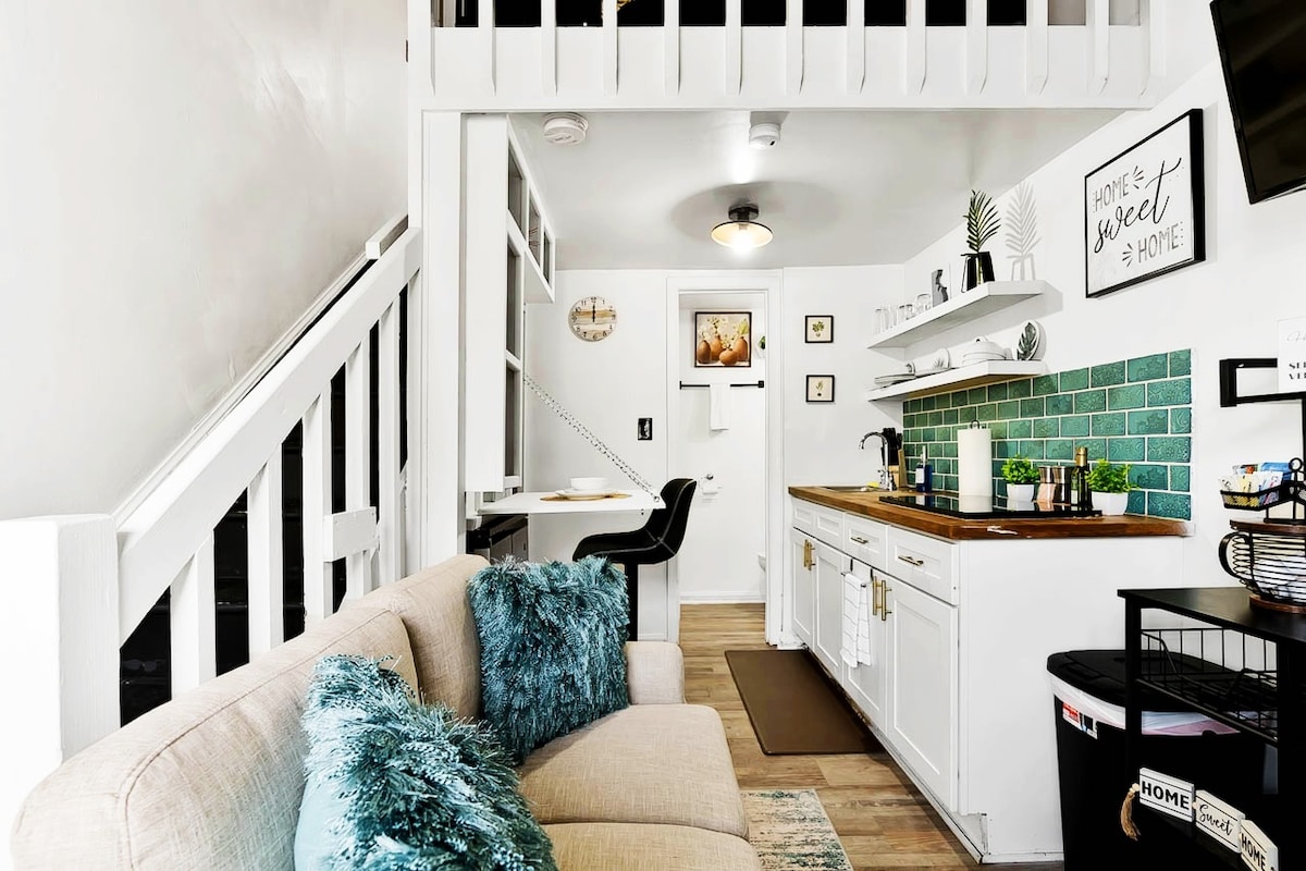 Opplev rolig komfort i dette 23 kvm miniatyrloftet. Lyst og gjennomtenkt designet, det ligger i nærheten av sentrum av Raleigh og store sykehus. Enten du er på besøk for fritid eller nødvendighet, tilbyr stedet et varmt, beroligende tilfluktssted. For et snev av lokal karakter kan et tog passere stille i det fjerne fra tid til annen, en mild påminnelse om byens puls. Dette er det mest behagelige og praktiske ved å bo på et lite sted.
