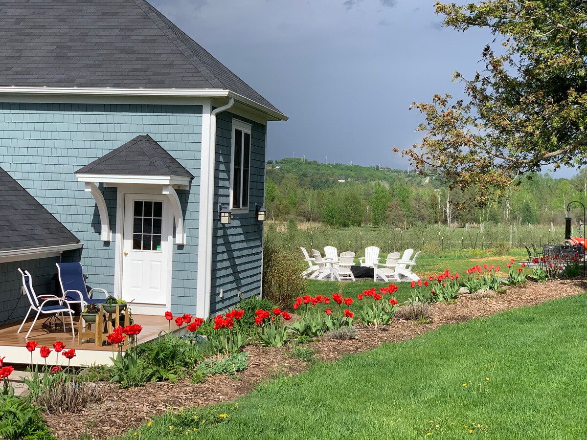 Nyt sommerdagene eller vinterens prakt. Vi befinner oss i et rustikt område i nordvestlige Michigan, 24 km nord for Harbor Springs, innenfor 3 km fra Tunnel of Trees. Vi er praktisk plassert for naturreservater, turstier, vakre strender, skibakker og Mackinaw Island. Hjemmet vårt er tilknyttet gjestesuiten, men gjestene får tilgang til suiten sin via en sikret egen inngang. Det utstyrte kjøkkenet vårt har et spiskammer, ferske gårdsegg, smør, hjemmebakt brød, malt kaffe og te.