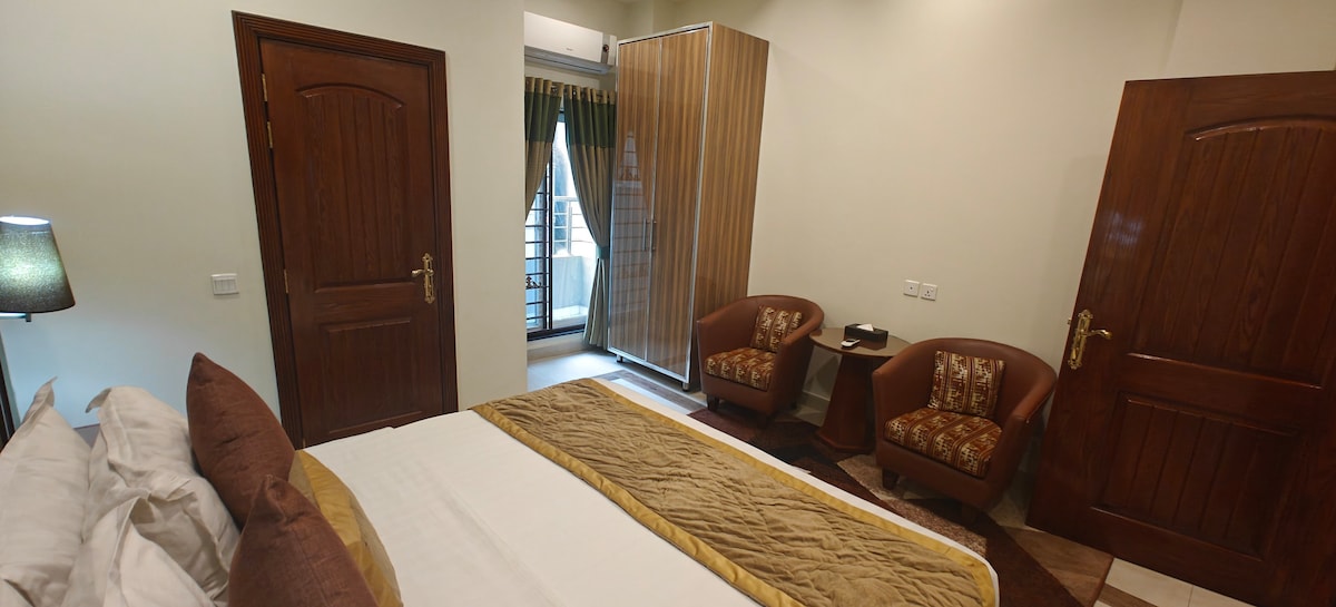 Hayyat Luxury Hotel Apartments ligger i hjertet av Lahore, og er et fristed for komfort og luksus. Leiligheten vår har en romslig stue med smart-TV og spiseområde. Vårt fullt utstyrte kjøkken tilbyr alle bekvemmelighetene til et hjem, inkludert stekeovn, mikrobølgeovn, brødrister og vannkoker. Unn deg en avslappende bløtlegging på det private badet, komplett med gratis toalettartikler.